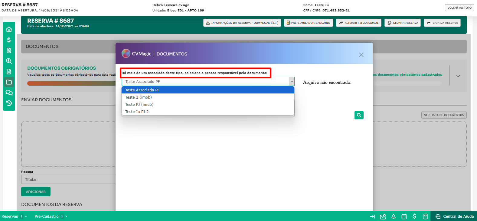 Com as permissões habilitadas, no menu "Documentos" da Reserva, você conseguirá visualizar e executar o CV Magic | Documentos.