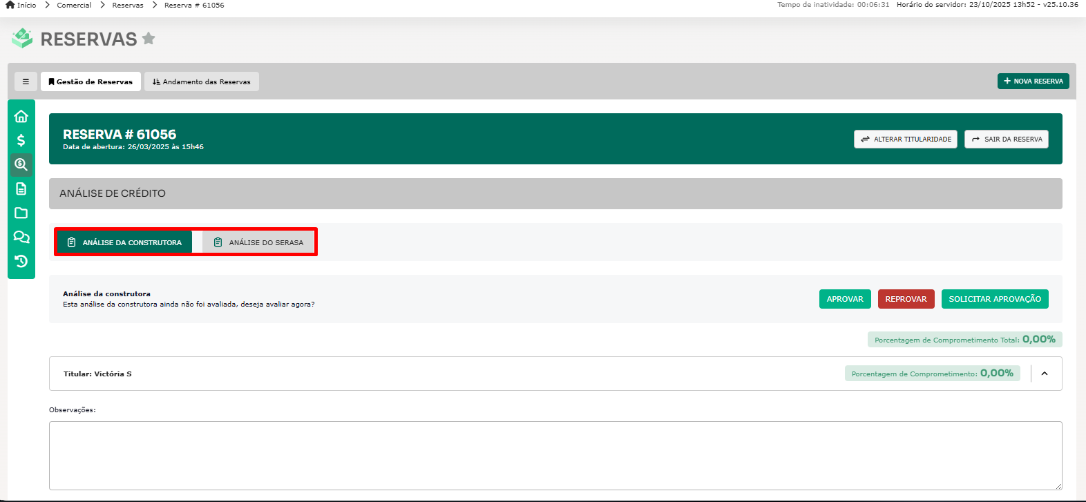 Você também pode aprovar, reprovar ou solicitar aprovação da Análise do Serasa. No entanto, é importante ressaltar que apenas terá permissão para aprovar ou reprovar se possuir a devida autorização de alçada concedida pelo gestor.