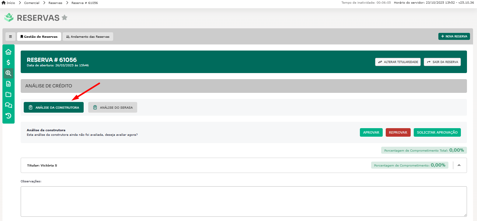 Com a etapa da Análise da Construtora aprovada, será possível seguir para a Análise do Serasa.