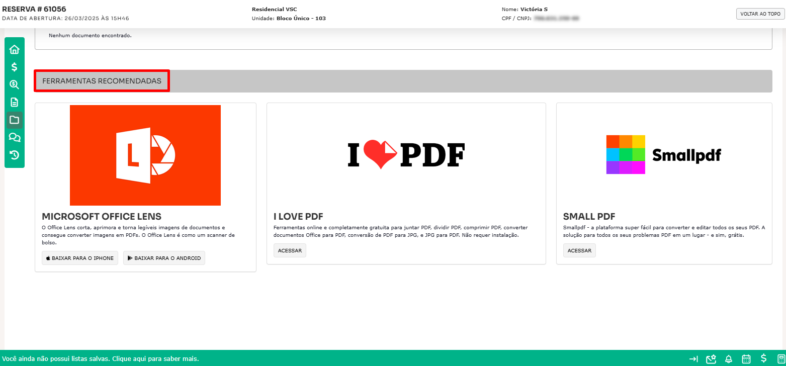 Em "Ferramentas recomendadas" temos três opções de ferramentas (Microsoft Office Lens, I Love PDF e Small PDF) para ajustar os arquivos como converter imagens em PDF, converter e editar seus PDFs etc.