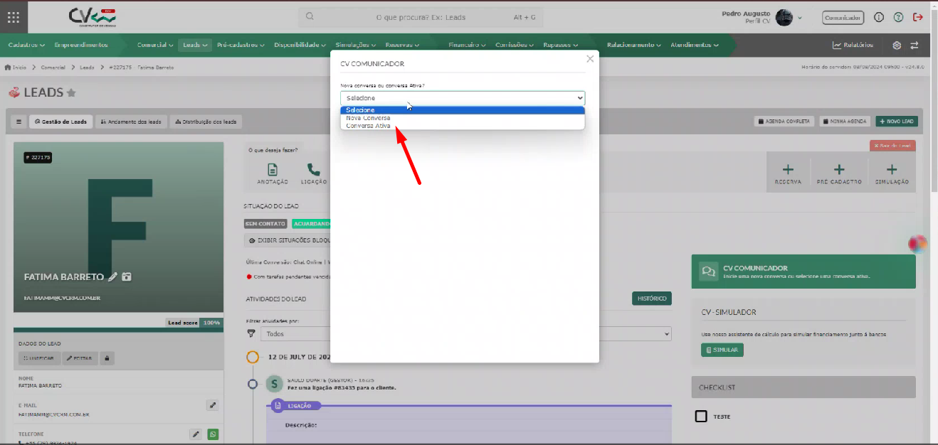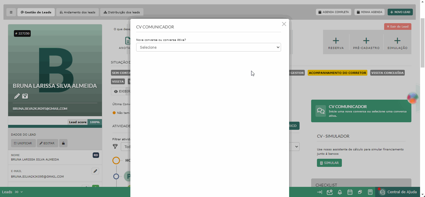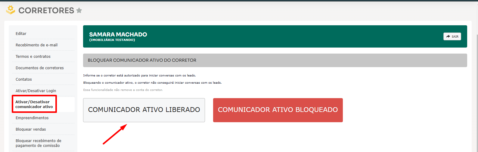 Se não habilitar o ativo, o corretor não conseguirá iniciar mensagens com leads.