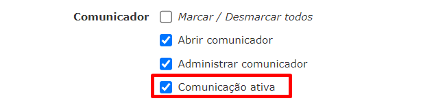 • Essa permissão é encontrada na aba Relacionamento > Comunicador.
