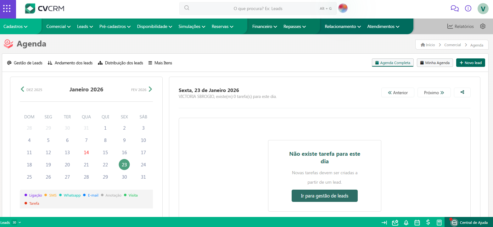 Em "Agenda Completa", você (gestor) poderá visualizar a agenda de todos os corretores e imobiliárias.