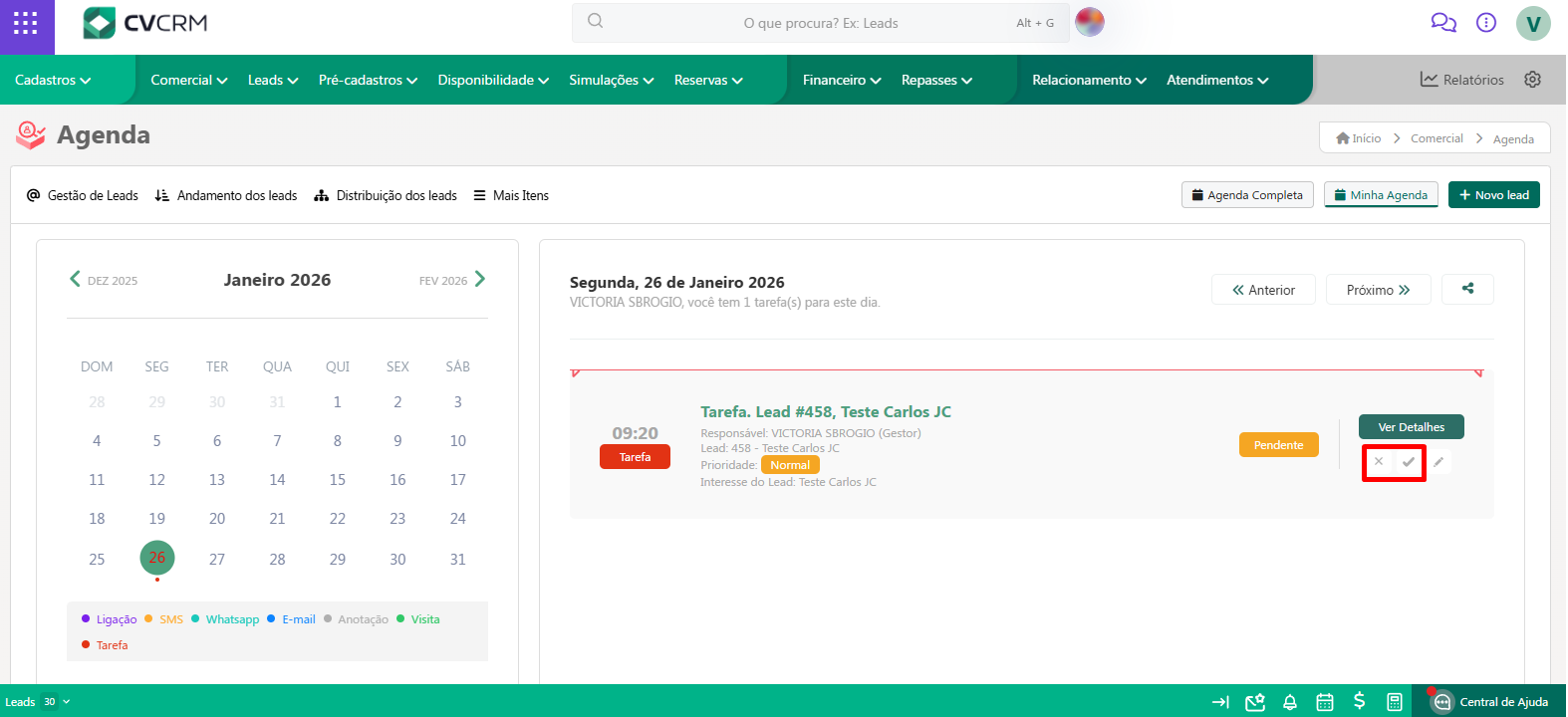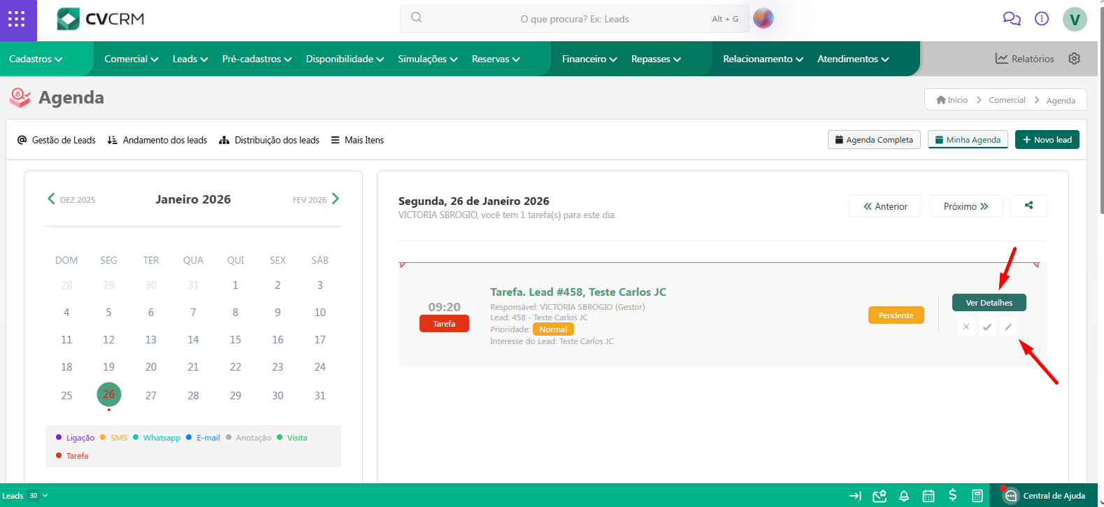 Na agenda você poderá visualizar os detalhes e editar essa tarefa.