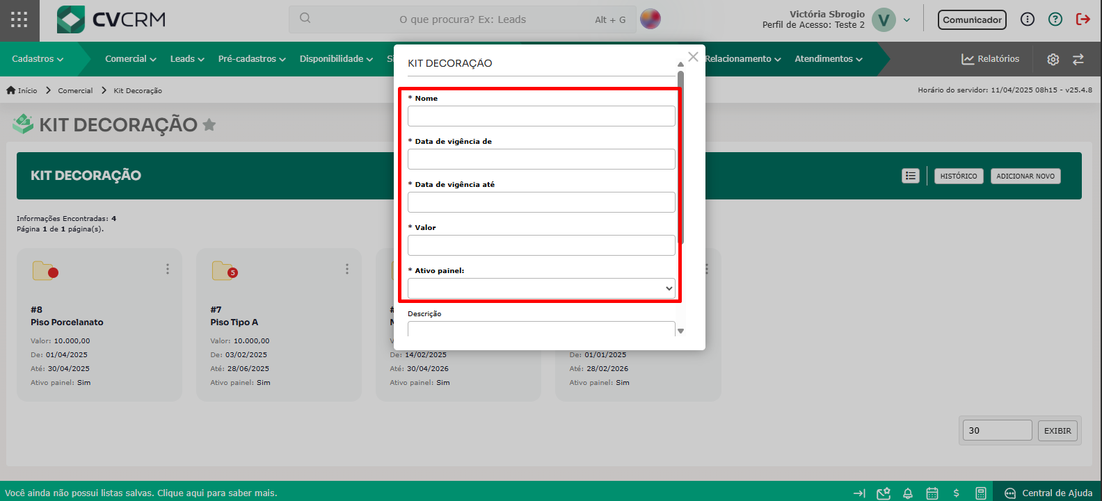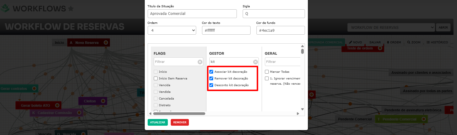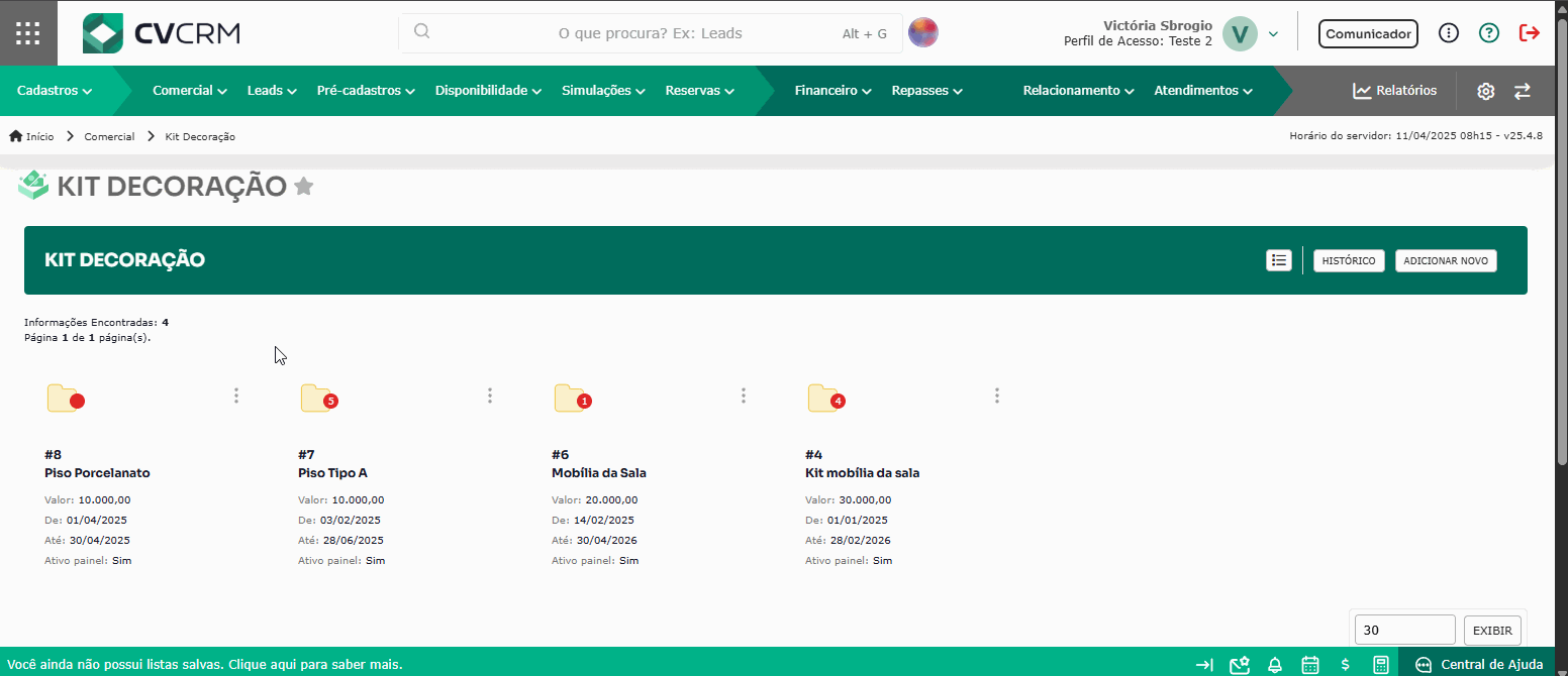 O processo é simples e, primeiramente, é necessário ter permissão no perfil de acesso (aba "Comercial" > "Kit Decoração").