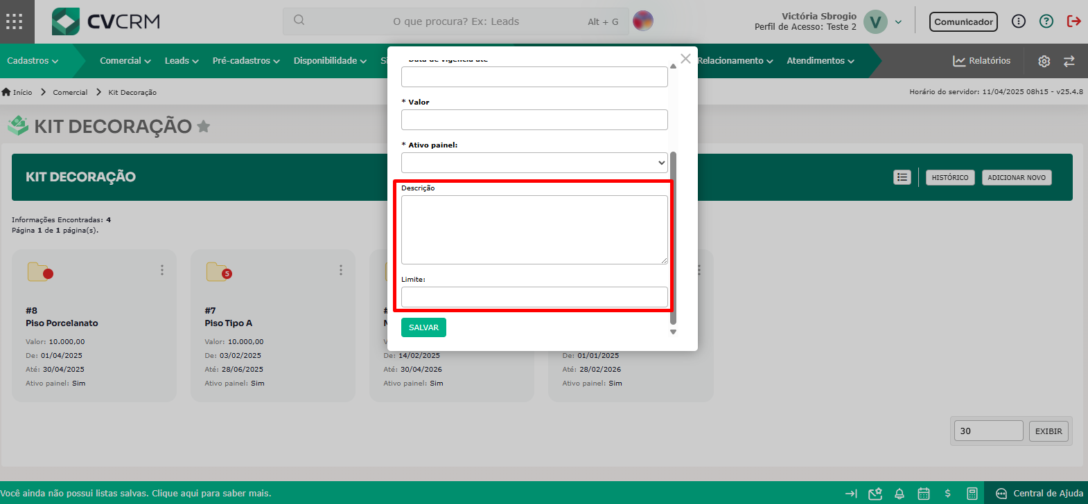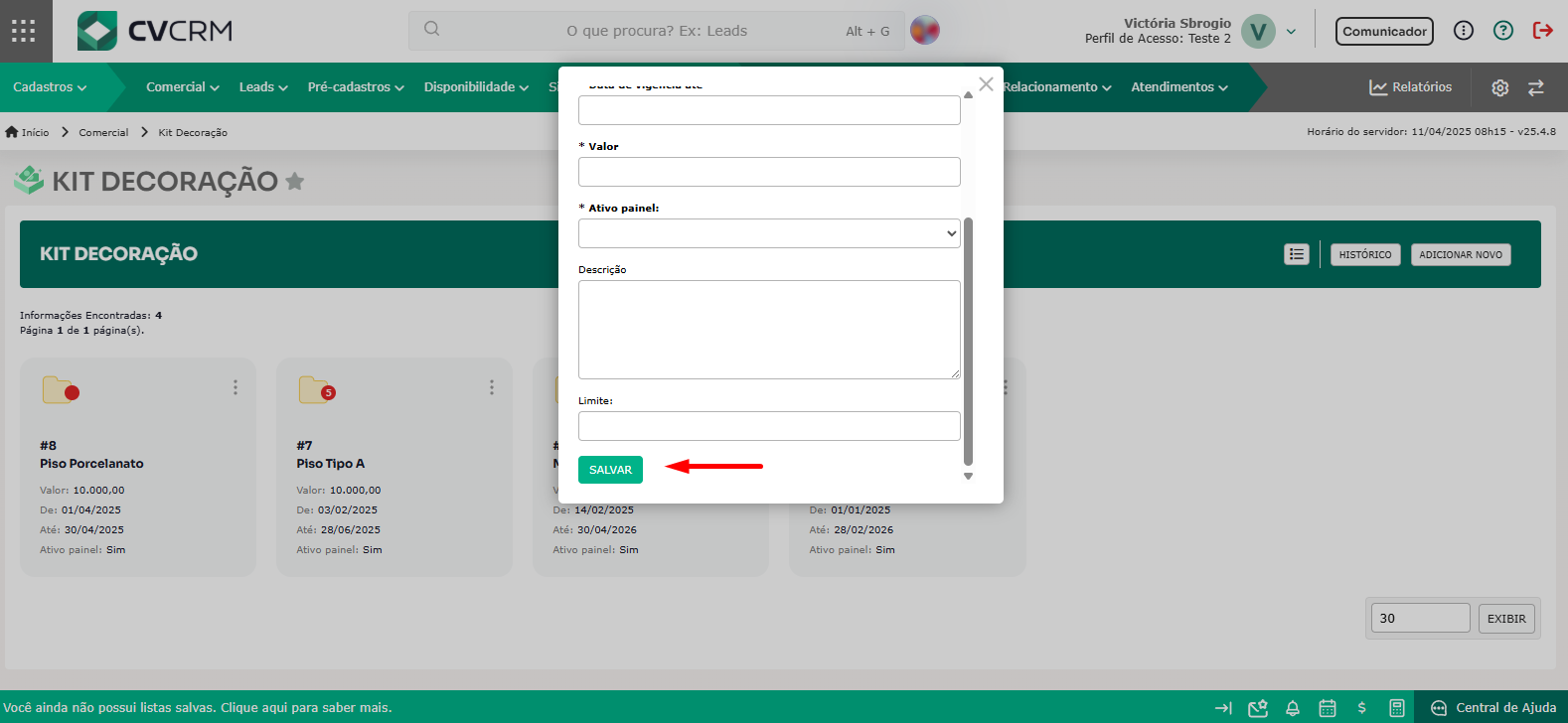 Obs.: se nenhum empreendimento for vinculado, o kit ficará disponível para todos os seus empreendimentos ativos.