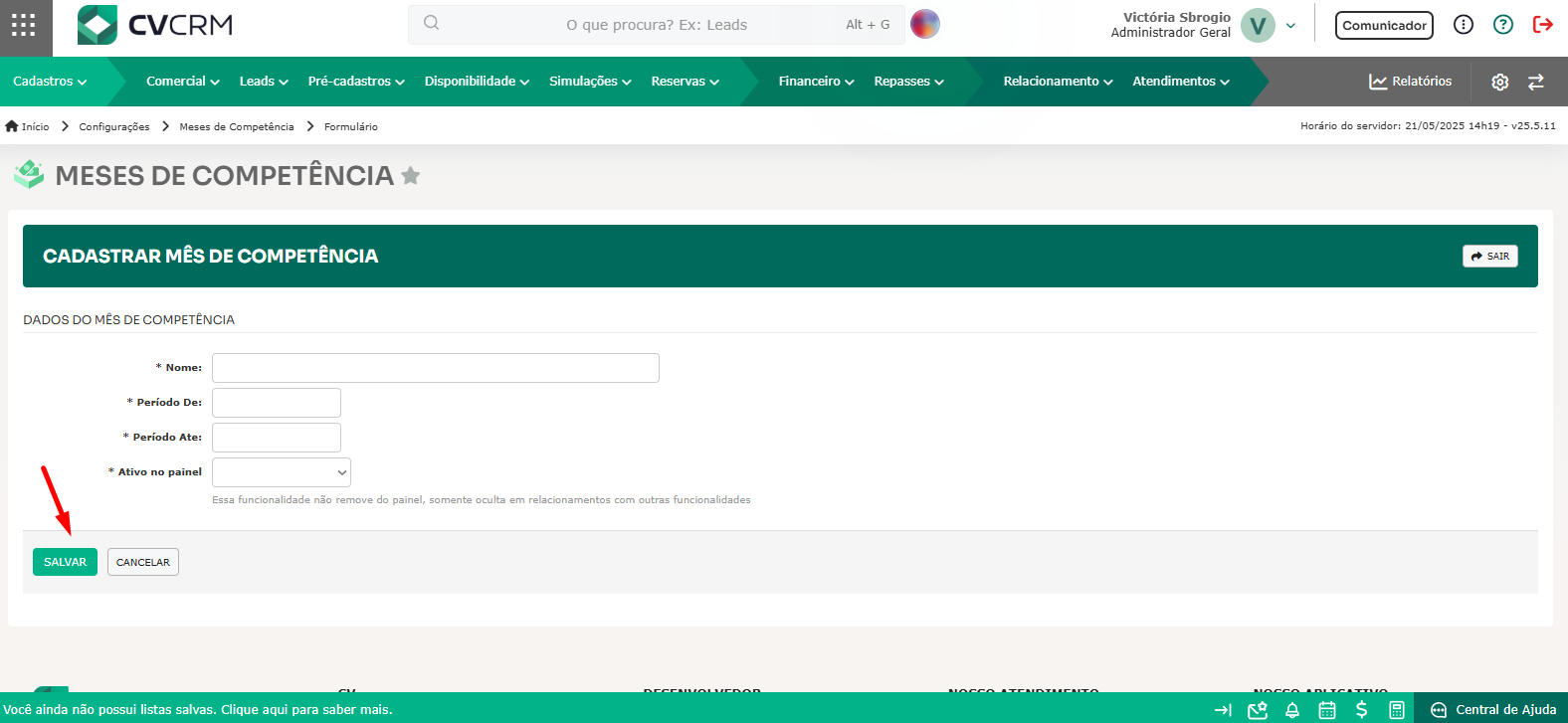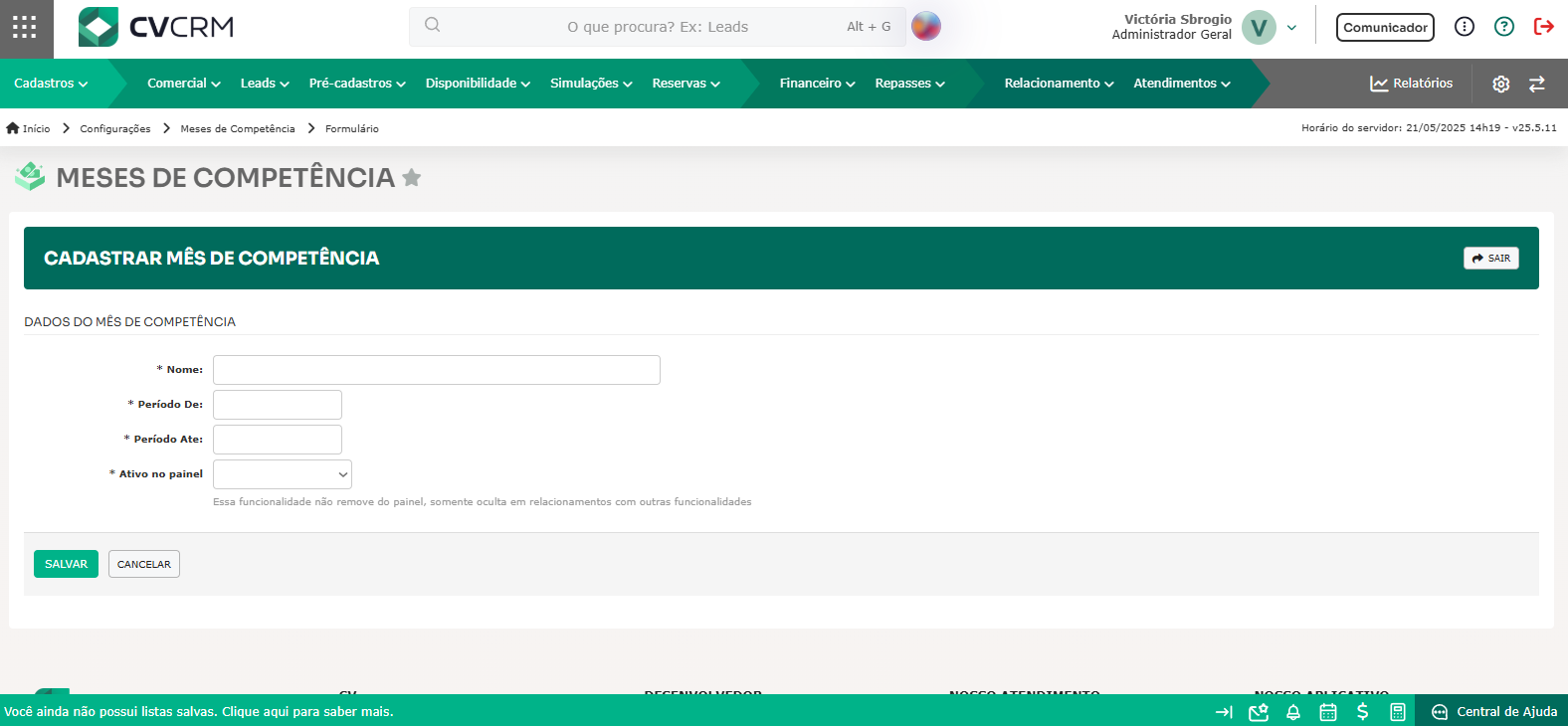 Este artigo explica como cadastrar, editar e remover os Meses de Competência, que são utilizados para controle e organização das reservas no CV CRM.