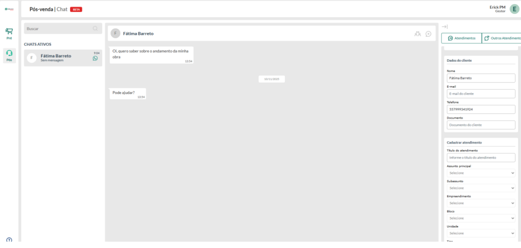 Essa nova funcionalidade tem como principal objetivo facilitar a gestão de atendimentos pós-venda. A proposta é oferecer um canal prático, ágil e centralizado de comunicação entre a incorporadora e seus clientes, por meio de um chat dedicado e totalmente integrado à plataforma.