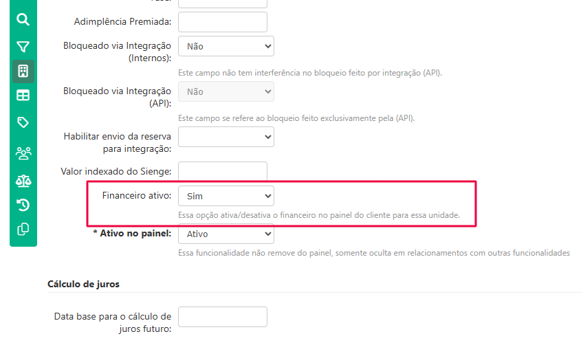 - No cadastro da unidade, verifique se o campo Financeiro Ativo está marcado como Sim;