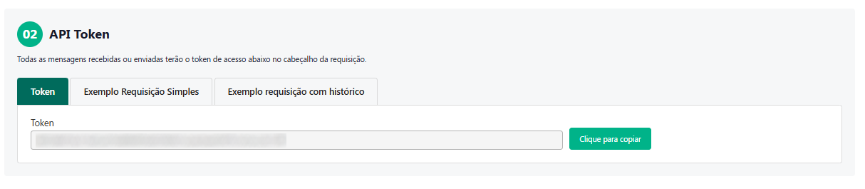 No mesmo local onde foi cadastrado o canal irá ser apresentados alguns dados como Token, API para cadastro de mensagens e Webhook.