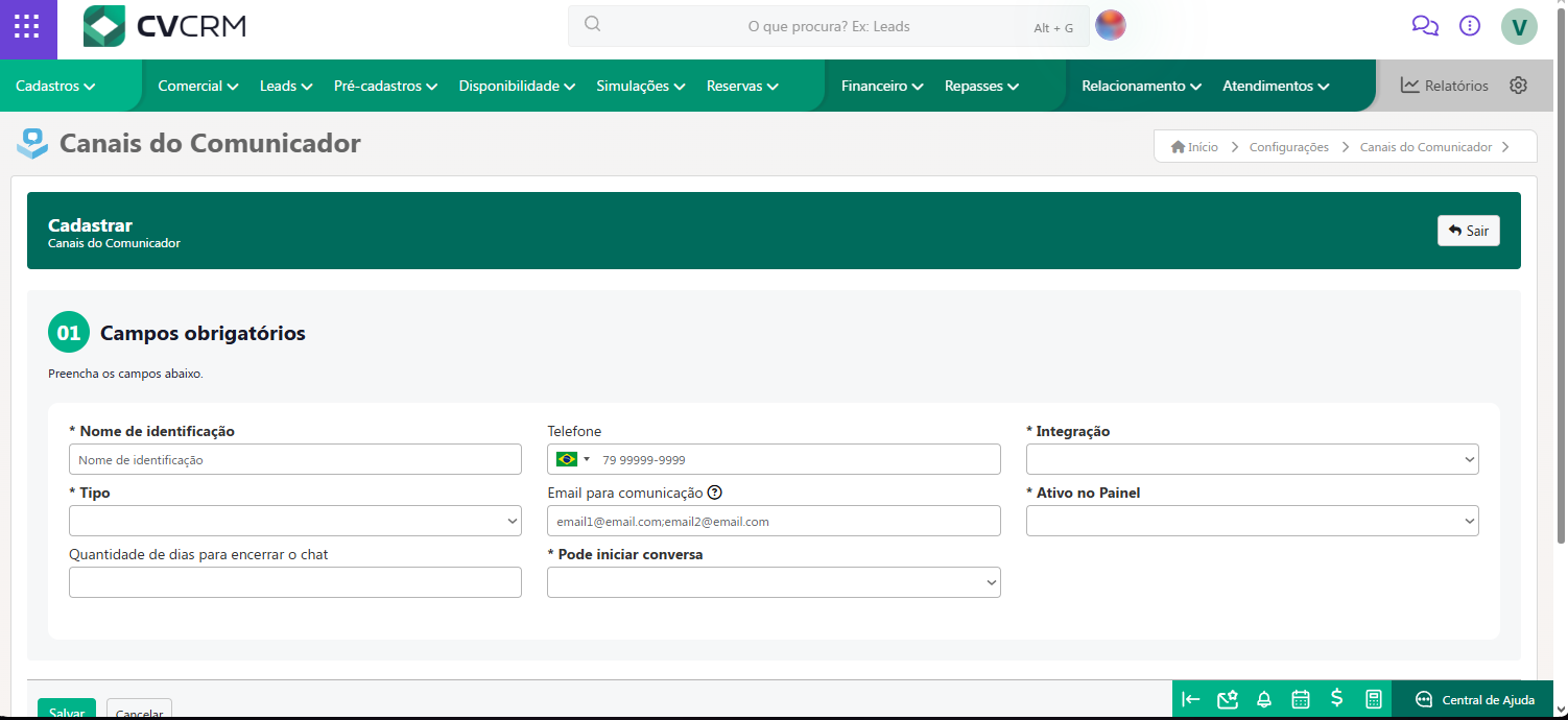 - Telefone: É um campo opcional, serve apenas para identificar o número usado no canal.