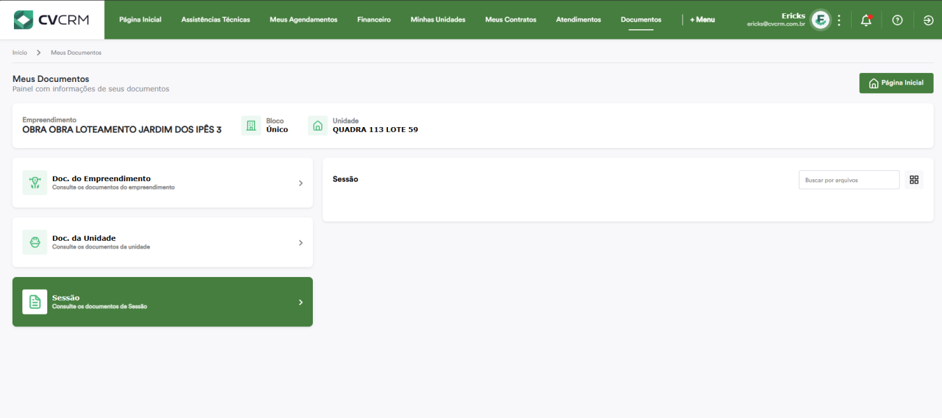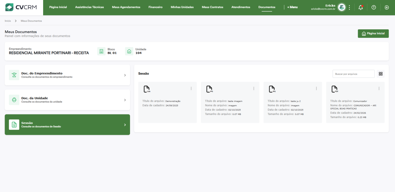 Após concluir os passos acima, os arquivos serão exibidos automaticamente na nova sessão criada dentro da aba "Meus Documentos" no Portal do Cliente.