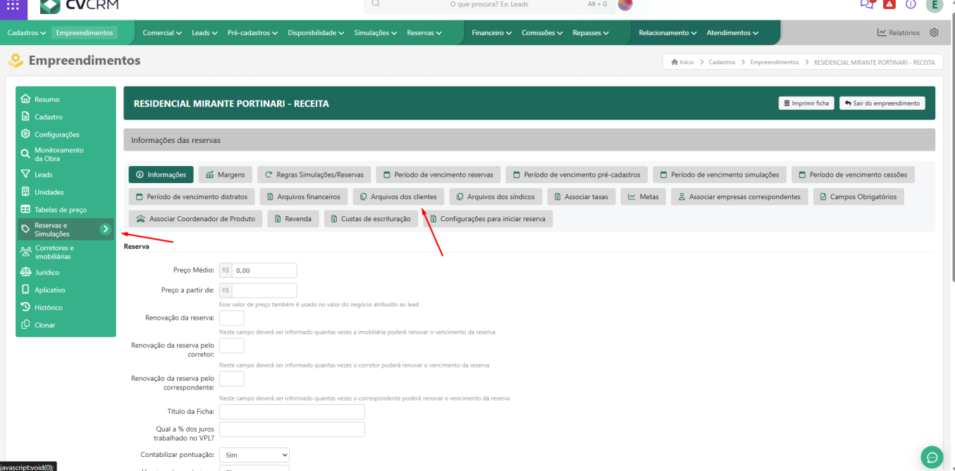 - Cadastros → Empreendimentos → (Selecionar o empreendimento)