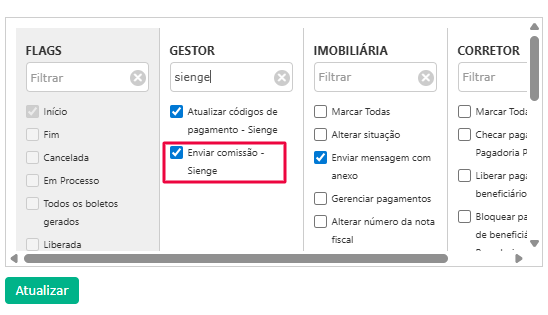 1° No Workflow de Comissão precisa estar habilitada a permissão Enviar comissão - Sienge nas situações que essa ação poderá ser feita